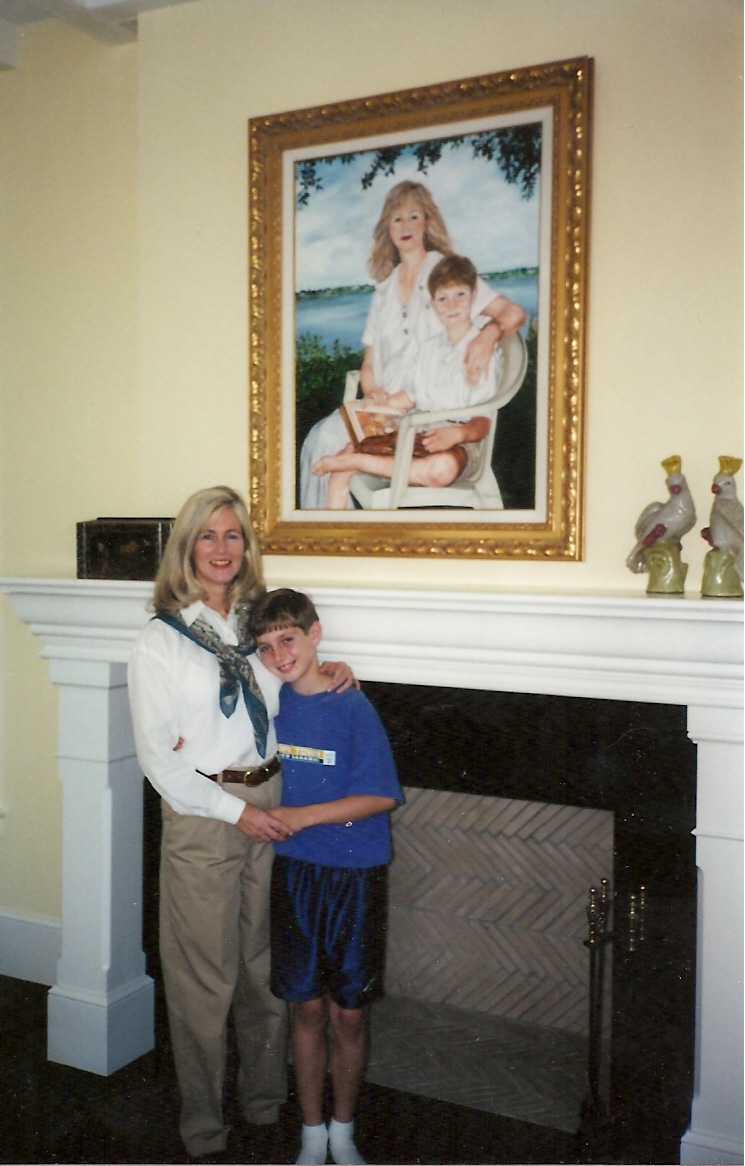 Mary & Collin standing below a Mother-Son portrait that hangs proudly in their home. Below is the portrait itself. Remember that photographs cannot capture the depth and beauty of an oil portrait.